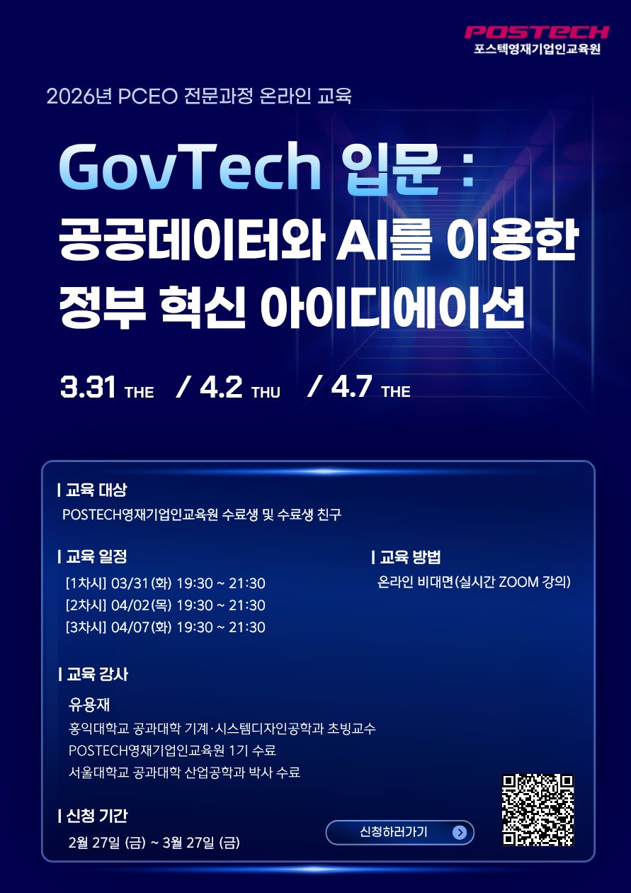 POSTECH 영재기업인교육원 전문과정에서 2026 전문과정 온라인 교육